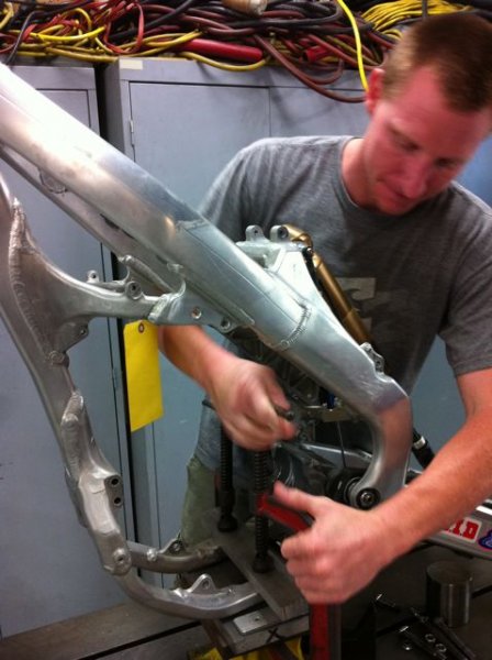 Ricki modified the chassis geometry with peices he made and designed, such as linkages to get a desired curve we were after to optimize the shock s potential. He made motor mounts and head stays to create a certain amount of flex and rigidity where needed. Each rider wants the bike to behave a certain way that suits their riding style which translates to faster lap times and this is Ricki s specialty.Parts he has made have shaved up to 2 seconds a lap and over the course of a 15 to 20 lap race for our riders, this can be up to 30 seconds or more throughout the duration of the race. This can be the difference to a race win in such a competitive feild. These skills are such an asset to our team and we re very pleased to have him on board”.