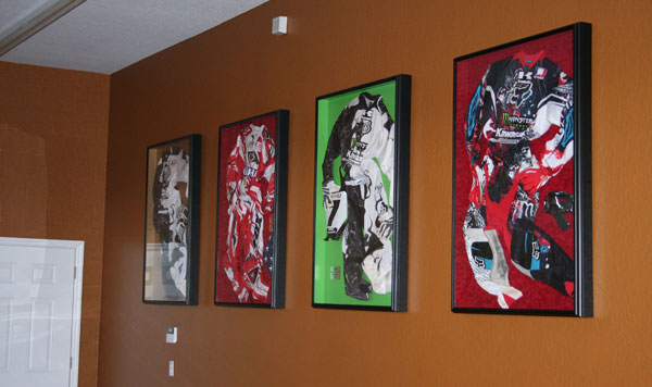 | James has some of his championship gear framed all nice looking. I’m sure that he hopes he can get some Answer gear up there real soon. |