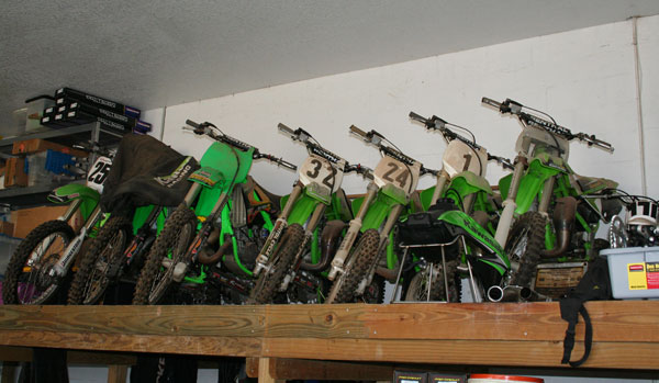 | This was cool. James keeps all his championship bikes, still with the dirt on them! I was at FMF Honda when James switched to PC in his amateur days and it crushed them. There were alot of Kawasaki parts laying around because of James and now Malcolm riding them for a hundred years. |