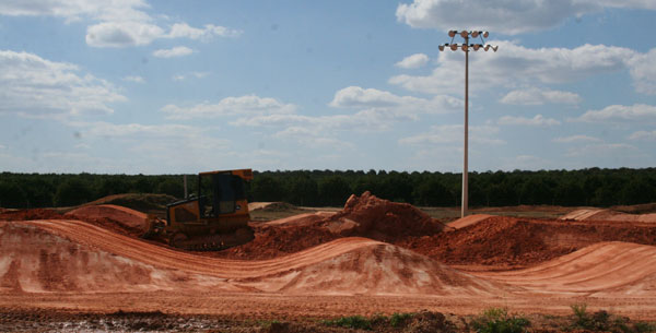 Today we went out to James Stewarts house and watched another display of men going really, really fast on motorcycles. In the interview I did earlier on this site, James Stewart mentioned to me that he reinvests in himself and his career and doesn’t bury all his money in coffee cans in the backyard. And although around the Stewart compound there is the usual trappings of success that a young man should help himself to (cars, bikes, basketball court) there is much more put into the program trying to make himself better. There seems to be a dozen dozers, lights for the supercross track, a full gym and other things to help him try to grab that number one plate back. The facility is very, very impressive and like I said, everywhere you go around the property you can see that the guy is spending a ton of money on his craft.