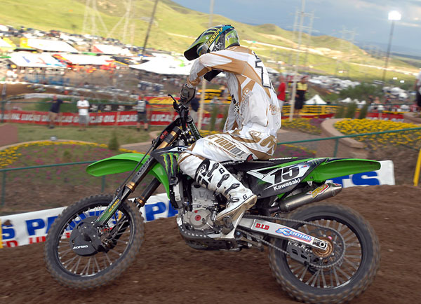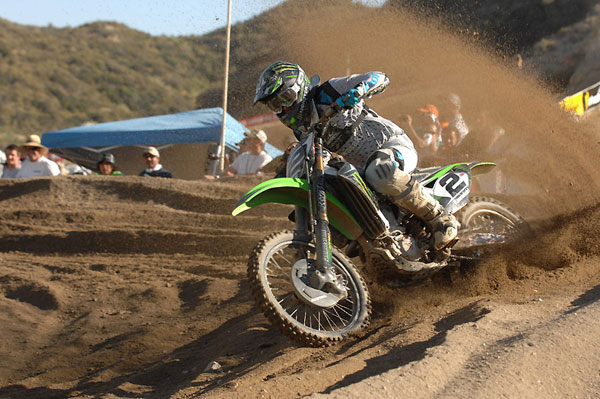 | Ok, maybe this guy is the surprise of the series. The WORCS rider was a strong eighth in the first 450 moto of the year before getting a flat and having to slow down. He eventually ended up 12th and that next week, his bosses at Kawi pulled him aside and yelled at him for racing MX because I guess he really didn’t ask them if he could. I imagine he was told that he’s paid to race with the tortoises and cacti. Then they put him on the team after injuries to RV and Ferry and he responded with a 5th in his first race! One thing about RD is that he won’t shock you with his blazing speed but man, he can ride his pace for the entire moto. He has probably passed 329 riders so far in the last five laps. That’s Dietrich time! Imagine that, a desert racer that can ride fast for a long time, who’d a thunk it? |