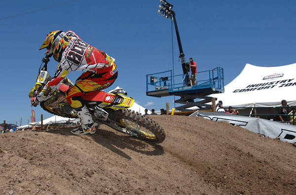 Well we’re halfway through this little series called the Lucas Oil AMA Motocross Championships and, for the first time in a while, we really don’t know who’s going to win either series. There has been seven first time winners out of twelve possible and the 450 class in particular seems to have a new hero each week. I thought it would be fun (although I’m sure the riders won’t think it is) to go through the points standings in each class and talk about that riders season. This is just my opinion, it doesn’t make it right and if you disagree, well that’s cool and write me at steve@directmotocross.com and tell me why. Thanks to Carl Stone for his bitchin photos.