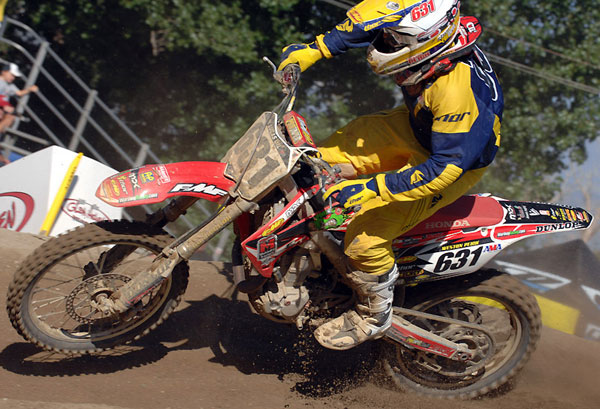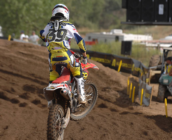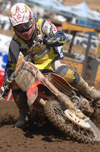 | The rookie of the year so far in motocross, “Sugarbear 2” is just a treat to watch out there. He also has 151 points so far. Weird huh? Anyways you know how I was talking about Pourcel and how he doesn’t waste much motion on the track? Well the complete opposite of that would be Barcia. The kid just throws the bike around and works his body to the extremes. He got tired at Glen Helen and Hangtown and probably threw a win away. Well, he’s figured it out and I think he will win a moto here real soon. This NJ born rider (Weege told me that) is going to be amazing in supercross next year because of the way he scrub-a-dubs his CRF. |