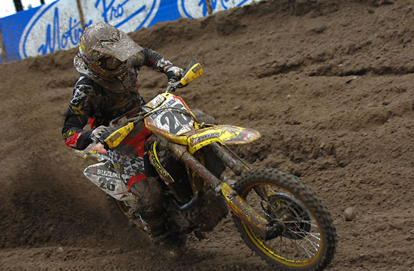 Michael Byrne: I know but I’m telling you that I don’t like it. Just like when I won my moto for Factory Connection on a 125, the fact that it was wet helped me. It wasn’t like a true sand track y’know? I felt horrible in practice this weekend, I qualified something like twentieth and it wasn’t good. I went back to the truck and Roger (DeCoster) and Reedy helped me out with stuff and I came out and rode better. I was happy with my ride in the motos, I got some good starts and felt pretty good.