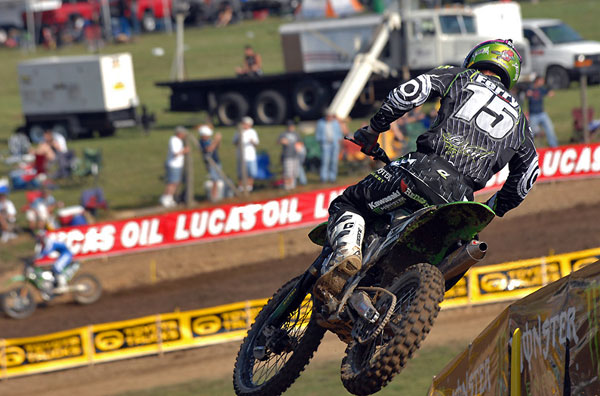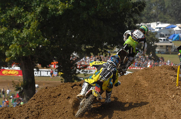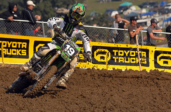 | The champ had another off-day at the last round. Reed took too long to get going in the first moto but got Byrner on the last lap to finish second. He tipped over in a rut in the second moto and pulled out shortly after that with dizziness. I heard that he was throwing up while still on the bike. No matter, Reed is the 450 champion and for that, he’s a bad ass. |