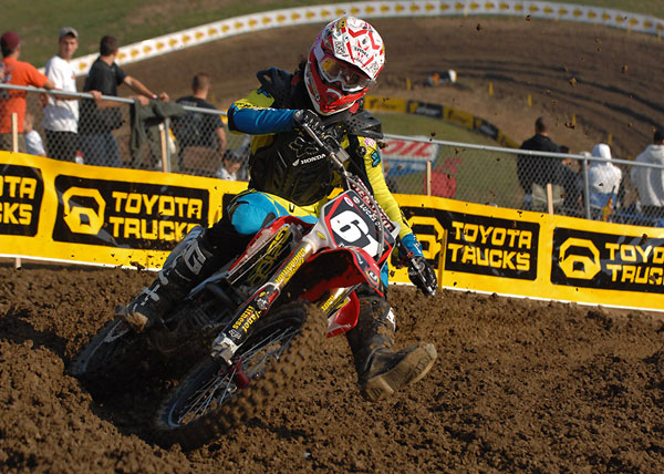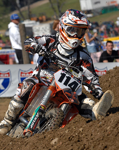 | Jake Moss had some problems in the first moto and dropped back from a high of 6th to a 10th. Not sure what happened there but he made up for it in the second moto when he got 2nd. Moss is fast, he’s a little scary to watch sometimes because he pins it but I think next year, he’ll be top three in west series. |