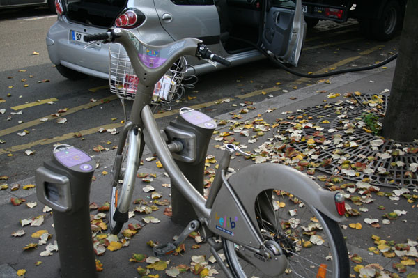 | There were rows and rows of these bikes that you could rent. Somehow, the honor system works over there. Except we did see one empty slot and the metal all mangeled where someone had taken one of these sweet rides. |