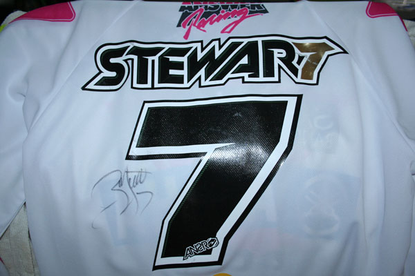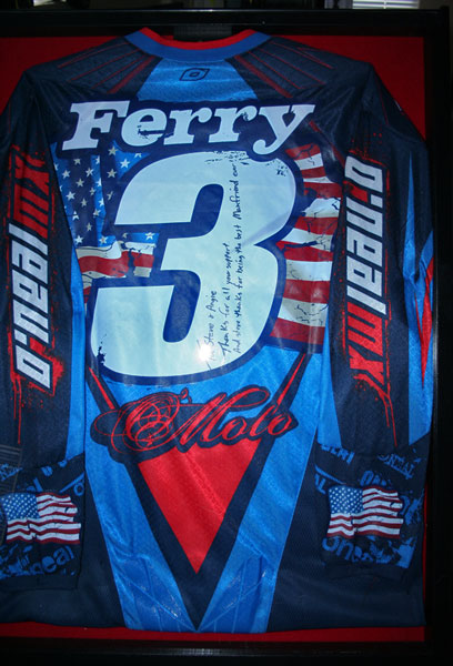 | Here’s one of Ferry’s 2007 MXDN jerseys that he signed to me and Angie…oh wait, he forgot to actually sign it! Goofball, I keep meaning to get him to do it when I see him. He signed it "To Steve and Angie (my wife btw) thanks for all the support and Steve, thanks for being the best man-friend ever." Excuse me, my eyes are watering up a bit right now. |