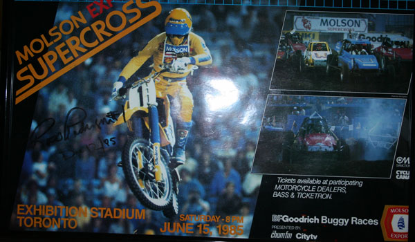 I just got this gem the other day from Will De Clercq. It’s an original Toronto SX poster from 1985 signed by Ross Pederson. Yes, I know it’s incredible and I’m the luckiest guy on earth. Pretty sweet I must say. Below is a jersey from Retro night 2008 that James wore. I always loved the Micky Dymond gear from this era and I love the whole re-creation that Answer did for him. James signed it for me after some race later on. Thanks to Roger Larsen for getting this rare item to me and I was actually going to give it to my brother but then thought better and it’s now mine. |