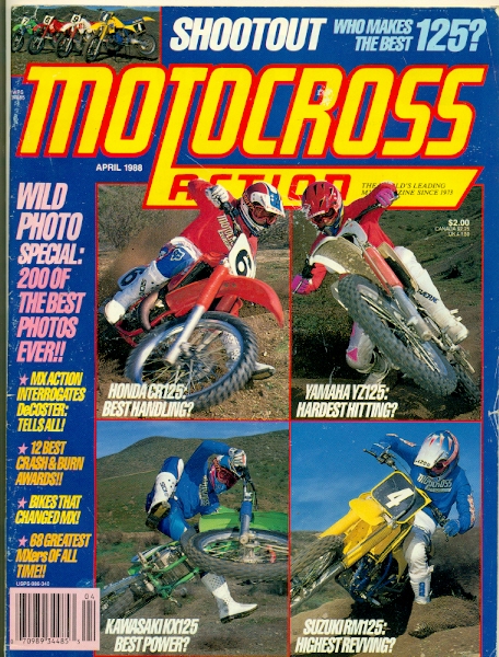 The April issue has the four 125’s as MXA shoots’em out. On a related note, I was reading an MXA from ’84 and there was a seven bike 125 shootout in it! They threw the KTM, Husky and Cagiva in there and probably not any shock that they were the three worst brands. Anyways, this issue starts off with more information on the promoter war going on between Goodwin and Thompson and then a bunch of mini-interviews with JoJo Keller (who says that the Kawi’s didn’t work for him and he’s back on a Honda), Larry Brooks (who says that 1988 would be THE year he comes out swinging), Jeff Stanton (who signed a full-factory deal with Yamaha and says that Honda couldn’t offer him enough. History would say that one year later, they found the money), Guy Cooper (talking about how being married helps him out), Fred Andrews (who says that if the AMA doesn’t increase the purse money, he can’t afford to race) and Mike Craig (who tells us about a Tahiti SX that he went to with topless beaches. Yep, sounds like Craig.) The 125 shoot-out goes like this- Kawi has the best power, Honda handles the best and the KX took home best suspension. At the end of the article, it’s obvious that Kawasaki is the winner but they never really say who makes the second best 125. I got to think it’s Honda as, even though they changed from the ’87, Honda didn’t really make a crappy bike in the mid-80’s. I do know one thing, the Suzuki sucked. Something that I have to mention here is that the 1988 Kawasaki bikes were universally lauded as the best in their classes and that’s true I think. I had an 80, my buddy Kyle had the 125 and his brother Dave had the 250. I rode them all and the suspension was really great but I just don’t think you can call them the best bikes. The quality control on these things was terrible. The plastic cracked if you looked at it wrong, the footpeg springs were jello after ten minutes, the bolts stripped out badly and the frames cracked. So no matter how good they worked back then, you couldn’t say that they were better than the Hondas just because they were piles of crap half-way through the season. There, I’ve said it. This issue is really a best of motocross with a ton of features all about the history of the sport. There are enough mentions of Tony D to fill a copy of ‘War and Peace’. An interview with DeCoster, some cool crash and burn photos, a list of past champions and a bunch of old photos. It’s cool for sure but a lot of it is recycled material that we already knew because we were hard-core MXA readers. Still, I guess you have to dust off the archives once in a while. |