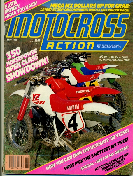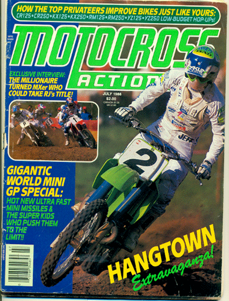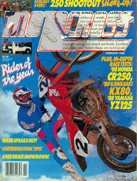 I apologize for the shape the February issue is in but the guy that I got these from was about 14 when these came out and, like me, tore stuff and cut things out. I guess he liked the title sequence. The ’88 CR250 is on the cover and this was a pretty cool bike when it came out. The low-boy pipe was like nothing we had ever seen before not to mention Honda went with the blood-red color. Its photos like this one that made all of us fall in love with MXA. This was radical stuff back in the day and I’d love to see the “after” shot of this. The inset photo is RJ pretending to surf on his CR250. He was awarded a new truck for being named MXA’s rider of the year. This was a cool thing that they did every year and I always wonder what the dudes did with the trucks? I’ve never seen one driving down the road. I wonder if the riders could just get the cash if they wanted to? Anyways, the MXA truck makes the little plaques and trophy’s they give out for Rider of the Year nowadays look like crap. They test the YZ 125 and say that it is the best YZ125 since 1980. Yikes, that’s a long time and I know for sure this bike was better than the ’85 that my brother had as that thing seemed to seize every 10 min. Tom was not happy and I learned some new swear words in ’85. I always thought the ’87 and ’88 was basically the same bike but these guys say it’s not. The new motor in the ’88 makes it much better. There’s a race report from the Masters of Motocross in Italy where RJ cleans up yet again. The real story to me is Ross “Rollerball” Pederson finishing in fourth ahead of Jeff Stanton, Ron Tichenor, Eric Geboers and a bunch of other guys. Yeah, there’s even a shot of THE Ross dicing with Stanton and another one of him in his underwear strapping on a knee brace. I had better not go any further right now about this for fear of a restraining order. A test of the KX80 is in here and I didn’t even need to read this again. I remember when it came out as this was my bike of choice (or my dad’s) and I knew it inside and out. They interview DMC’s Dave Miller about the bike and that’s a bit of a bummer, I wanted to see how the Wrecking Crew felt about it. Anyways, Dave says the forks won’t work well for anyone over 100lbs. Which I clearly was. If you would like to see me on this bike, click HERE. I liked the bike and Tom bought me a practice bike as well. He hid it from my mom for a while, we would always kept the bikes separate and she would never know. There would be one in the van and I’d work on it and then load it up, unload the other one and work some more on it. Mom was oblivious to the spending. Big interview with Jeff Ward where he says Southwick is the best national track, Ron Lechien is, at different times, the fastest guy for one lap and the slowest! He says that if Ron ever figures it out, he’ll kill everyone. MXA asks him a bunch of questions about the AMA and I notice that there is quite a bit of anti-AMA rhetoric in the two issues that I’ve picked up. The Wrecking Crew say that the new CR250 isn’t very good and that they’d “rather not race it.” Wow, the best bike ever (’87 CR250) to this thing in one short year. A 250 shoot-out follows where the Yamaha wins with Suzuki in second. The crew loves the Honda’s ergos but not the motor. The Kawi seems to do everything well but the Yamaha’s motor is so good, the guys vote it the best. There’s the ROY two-page photo spread with RJ and his truck, a Nissan 4×4. Rick is posed in front of it with the shortest Life’s a Beach shorts on I’ve ever seen. They are flo-yellow with little blue bats on them and yes, I had a pair. Mine weren’t so short though. I also had the bomb shorts and my brother had the ones with The Jetsons on them. We used to just drool thinking about going to the one store in town that carried them. I remember they were like 40 bucks which is like $40,000 in todays money. |
