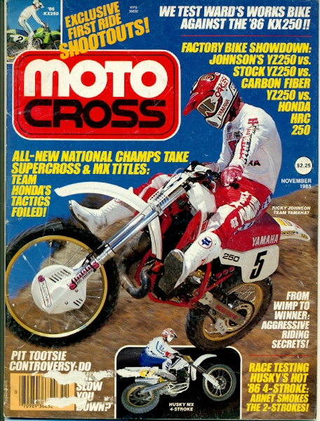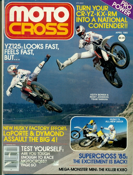 | I love this. Right on the cover they are basically saying that the ’85 YZ125 is slow. And it was. The test just bags on the bike the whole time for how it can’t get out of its own way. The Yamaha PR department probably just jumped out of the window when this issue came out. Inset photo of Team Husky and their assault on the AMA circuit. They hired Danny LaPorte and teamed him up with Micky Dymond which kind of worked out as The Mick did pretty well. Rich Taylor just told me a story of hanging with Hannah and Laporte this year and Danny sometimes blowing the doors off Hannah while practicing. |