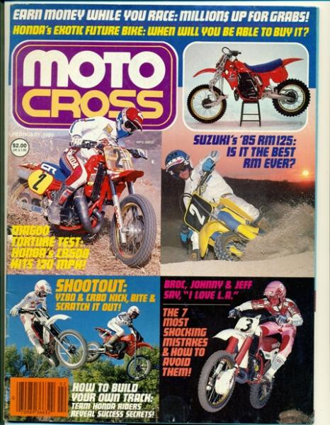 | The ’85 Suzuki RM125 was most definitely NOT one of the best RM 125’s ever. 80’s on the cover are always a cool thing as is Broc’s pink gear. Did anyone actually own this stuff? I never saw it live and in person. I also thought that Broc only wore this stuff at the Millers Master’s event but he was on a yellow bike there. Hmmm…. |