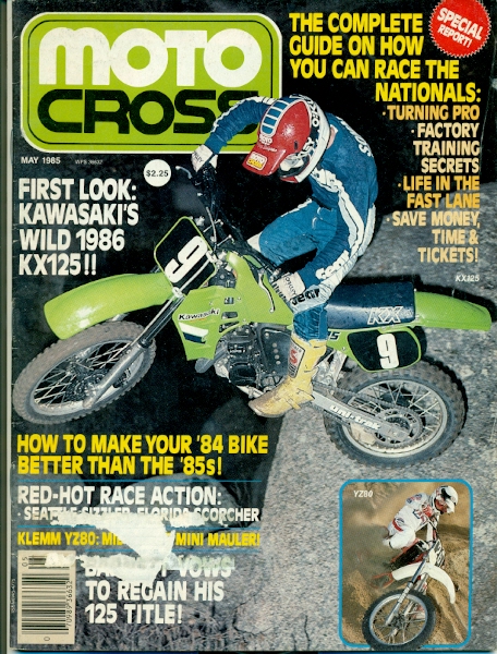 | I drooled over this bike for a while. It was an ’85 DMC Kawi that was super trick and was major fast. I loved this helmet also, it looks sweet. Editor Ed Arnet rode the 500 national on a basically stock 490 and then the gang profiled Broc Glover’s ‘works’ 490. Which is laughable. |