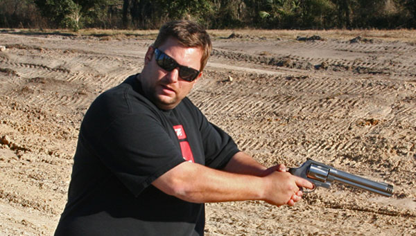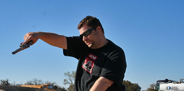 Here I am at RV’s house with the small gun. Red Dog asked me to pose gangster style which I did to his delight. RV asked me to take my finger off the trigger also. |