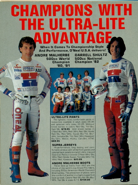 O’Neal used to put Andre Malherbre in its ads all the time. He was always portrayed as a real prick in the magazines but yet he’d always be smiling in these ads. Who knows? Maybe the checks always cashed. In regards to Darrell Schultz, I don’t think there has been a national champion that we knew less about than him. |