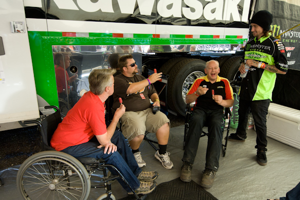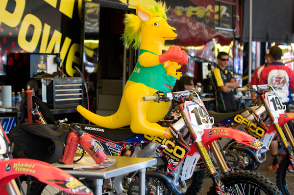GEICO Honda had Trey Canard and two members of Team Australia under their tent. Then they had this inflatable kangeroo that they brought into the bedroom after. |