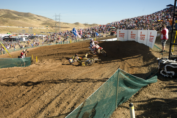 This guy ripped off the win in the MX1 class while his main competitor Ryan Dungey battled through the traffic. Antonio Cairoli is hell-fast and pretty stylish as well. And if any of you believe he’s riding a 350 out there, then you’re also the type to believe in unicorns and chocolate rivers. |