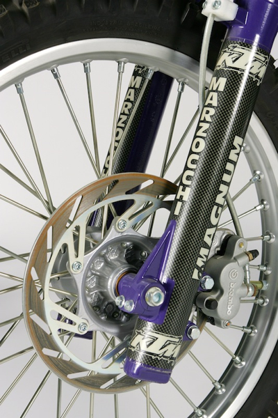 The performance of the Marzocchi Magnum forks was a huge step up for the Austrian bike. With the change to Marzocchi’s, KTM went from having the worst forks in ’94 to the having the best forks for ’95. The conventional Magnum’s provided a super plush ride on the small stuff while taking the big hits with aplomb. They combined the comfort of the KX with the bottoming resistance of the Honda. The Magnum’s only real flaw was its longevity, as the forks tended to eat seals at an alarming rate.