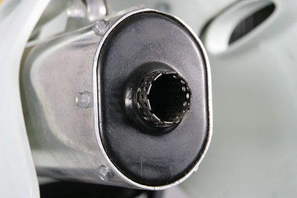 | The big KTM 550 actually came equipped with three separate mufflers. There was a traditional silencer, a pre-muffler installed in the stinger and a removable Answer Sparky (remember those?). The Answer spark arrestor could be slipped on over the stock silencer for off-road use or removed for MX.