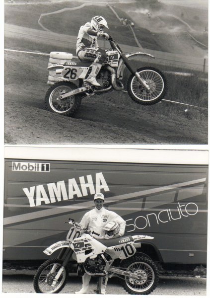 “This is from 1988 and this is the works Yamaha YZM500. This picture brings back good memories because that bike is a full factory bike, 100% handmade. I think the only thing that was production was the front fender, I’m serious. Everything is factory on this bike. This is after my accident (Vimond won the 250 World Championship and at a party celebrating his title he was being lowered from the ceiling when the cables broke and he fell to the ground, breaking his back. Many people thought his career was over after that but Vimond came back) and many people said I wouldn’t race again so to come back, ride this bike and even win the Swedish Grand Prix this year was very satisfying. This bike only won one GP and it was with me. My teammate was Peter Lunqvist and this is a good memory. I worked so hard on my recovery and the physical rehabilitation; it was in the United States-somewhere around San Francisco.