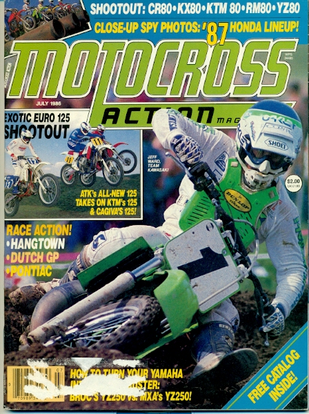 This issue holds a special place in my heart because it was so full of 80 coverage! Mr Know-it-all must have been so happy. This issue could also be called “Rick Simmet’s Life Highlight” as the Pacific Northwest rider was the man in this issue. He never did much as a pro but he was interviewed recently by Racer X and seemed like he got hurt a whole bunch. There’s a test of the new KX 500 and they say that despite many years of being the worst 500 out there, the ’86 is now the best open bike. Two months ago, they said the CR delivered the best open class performance. Guess we’ll have to wait for the 500 shoot-out. (Pause) There’s a 500 shoot-out in this issue! Yes! Yes! Finally we would see who made the gnarliest stump-pulling machine out there. And yes, it’s Kawasaki. They are the clear winner according to the Wrecking Crew. Race action is from Phoenix where RJ performs the expected clinching of the 1986 supercross title. I’ve seen this race on VHS and it was perhaps the worst sx track ever. Amazingly bad. Like James Stewart would probably not even set foot in the stadium bad. This month, Jody grabs Kawi’s works bike and tries to make the stocker as good. Surprisingly, the only things you can’t get off of Wardy’s bike is the fork and shock and the ignition. A stock pipe is used with KHI porting and such. Also, they probably can’t get the settings that give the bike the 33-inch seat height that Ward probably has. Again MXA has, in my opinion, surpassed the works bike with its look. The green airbox and cool DMC shrouds make for a sweet look. Did the guys build a better works bike? I don’t know, they say they did but who in the hell really knows? World Mini Grand Prix coverage from Las Vegas in this issue and there are tons of cool shots of the stars of tomorrow. Some guy named Jeff Emig does pretty well, he’ll probably go nowhere. There is a complete look at some kid named Ezra Lusk’s DMC KX60 that’s probably worth more than my house. Let’s not forget the look at the pee-wee rocket ridden by some kid from Oklahoma named Robbie Reynard. One of the cooler things they used to do was get all these 80 champs together and have them race three motos on bone stock Kawasaki KX 80’s. Great idea! Here is the top ten from that year: 1-Rick Simmet They always invited the Canadian 80 champ into this race and my buddy Jason Frenette got to race it in ’87 when he won the Canadian 80 championship at my home track. I always dreamed that I would get to go but I could never seal the deal. The year Jason won, I got 12th or something, then 7th the next year and the year after that my race bike blew up in practice and I rode a stocker to 7-7-7 moto finishes for, yup-you guessed it- seventh. After that, I was six feet tall and it was time to get off the eighties. You can watch me beating up on Blair Morgan on 80’s on my Pulpmx YouTube channel to verify that I was indeed too big. Sigh…a dream never realized. There’s a bunch of other stuff like setting up your mini and all that but back then, this didn’t apply to me because I had a two-year old bike. Only in ’87 would I finally step up to a current year bike. |
