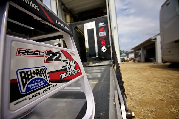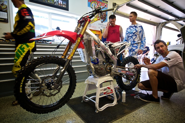 Reed’s race bike was being prepped by Lars Lindstrom in the workshop. |