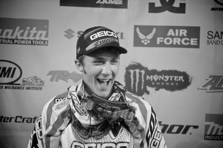 I’d like to take Christian to Vegas with me and just have him bet on any game first and then I’ll bet the opposite because it wood be a guarantied win this poor kid has no luck at all. He pulled a holeshot and lead for a really, really short while that was the highlight of his season so far. He took a couple races to get up to speed understandably and once he started getting comfortable he’s out with injury again. This kid is tough and last I heard from my “source” we’ll likely see him when we get to Seattle which is great. Amazing what Christian has overcome, and I hope he keeps it on two wheels for outdoors.