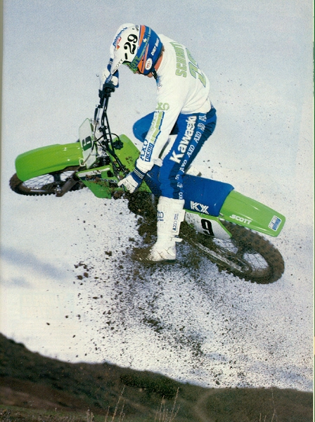 This is 1989 and as most of you can tell, I’m on a 1989 KX125. I figured a picture of me in action on the bike was better than the crappy MXA bike test photo that I had. Anyways, after my narrow miss of the prestigious Manitoba 80cc title, Tommy thought I should stay back and try to win this title all six feet, 170 pounds of me be dammed. It was a horrible decision by “Team Matthes” which I will get to in a bit. Anyways, we got some good help from Kawasaki in the form of a discount on the bike and we purchased the ’89 125 and got rid of the ’86. And what a bad move that was! The thing was a turd and broke if you looked at it wrong. See that Pro Circuit seat cover on the thing? Well that was because early on we took the bike out to the sand tracks and it was really slow, like “Dad, I think there’s something wrong, it’s so slow” type of slow. The Honda was the bike to have this year and although the Kawi handled well (all slow bikes do), it wasn’t good for my first real assault on the 125 C class (that’s how you did it up in Canada, no one skipped to the B class no matter how good they were). So then the bike blew up and we send the new parts to Pro Circuit for cylinder, head, a pipe and silencer for this thing. We got it back and…nothing much was different. The bike just wasn’t very good and to make matters worse, the thing was so brittle. The footpeg springs got loose in 20 minutes, the plastic broke all the time, the bolts stripped out and I broke the link rods as well as the gas tank when I came up short on a double (gas all over my nuts and it burnt so bad I had to miss my next moto while I held a hose to my ballsack- let the good times roll indeed Kawasaki). While waiting for parts that were backordered, I rode my dads ’87 CR125 with the ’89 KX front end on it (serious) and it was so much better than the Kawi it wasn’t even funny. Even when we got the parts, I kept on the Honda because I was just convinced that the Kawi had some sort of ghosts inside of it because we couldn’t keep it running. I raced Millville pro national amateur day and did well enough to get to race at intermission of the pro day on the CR. Then coming out of the sand in the first lap my chain broke and I had to push it back. So much for my glory. I don’t remember how I did in the season but I do remember that I had a lot of DNF’s and my buddies Honda would blow by me when I practiced with him. As far as the 80cc title, we kept the ‘88’s but it that was a complete disaster as I went back and forth with Langdale on his Suzuki for wins. Unfortunately I blew the shock reservoir off over-jumping a double (hot shock oil everywhere!), I broke the footpegs off and my dad had to put extenders on my triple clamps to raise the bars. In short, I was wayyyy too big for the bike and finally about halfway thru the season, we threw in the towel. Again, see the Blair Morgan video for an idea of how big I was. This was another bad decision by “Team Matthes”. |