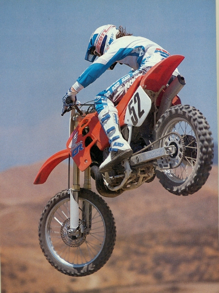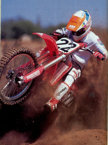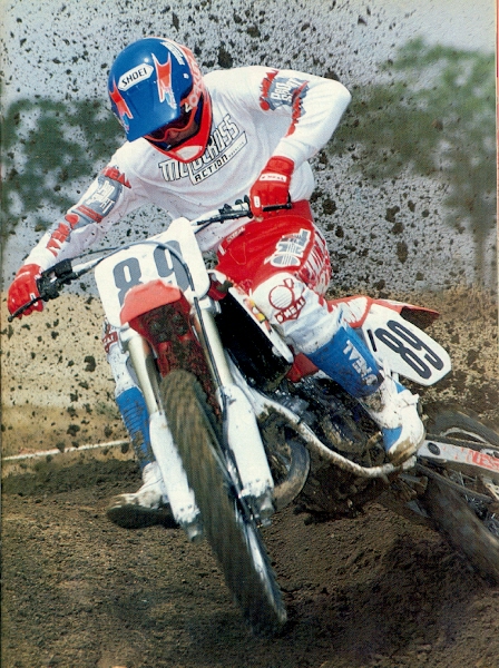 So it was pretty much eff Kawasaki at the end of ’89 for dad and I. We knew a guy who worked at Honda Canada and managed to get half of retail on one bike and a discount on another and with that, Team Matthes went red in 1990. I remember that one day I just got home from school when he picked me up and took me to the bank. He had already gotten it all set-up with the bank, he was going to co-sign on a $13,000 loan and I was getting a 1990 CR 125, 250 and 500. The 500 was mainly for him but he always subscribed to the theory that riding a 500 well enabled a guy to ride anything well. That was a solid thing to think and when JMB came out in a story and said the same thing, Tom pretty much thought he was a genius. The part about putting a 16-year old who had a part-time job pumping gas into that much debt was also apparently a good idea. So that was it, I was now a big bike rider (literally) and wanted to get rid of my number 17 because I associated that with an earned pro number and I wanted to be a cool guy (even though I was in the C class still). I chose #762 because I thought it looked good on Mike Kiedrowski’s bike that previous summer. I used to think the 125 was a big deal but I was now out riding the 250 and 500 most of the time to save the 125 for racing. Honda had revamped the 250 this year with new bodywork and a new color orange. The rear section looked much different than the 125 and 500 and the hot ticket was putting that rear section on the other bikes. Which of course my dad did on the 500. The 250 was really fast but man, the suspension was horrible. I remember the spiking I would get in my palms at times and no amount of springs and oil height (Tommy’s suspension “secrets”) seemed to get rid of that feel. The 250 I rode had a Pro Circuit pipe and silencer, a CEET seat cover, Alumilite bars and was pretty much stock. I dominated the 250 C class this year and won almost every moto but there wasn’t too many of the fast guys in the class. |