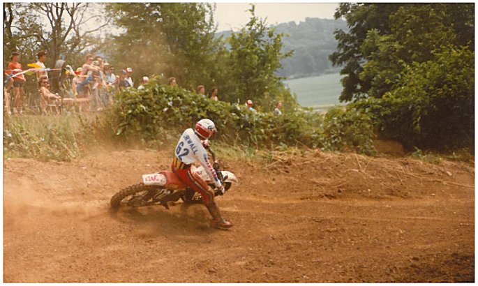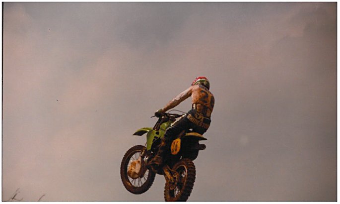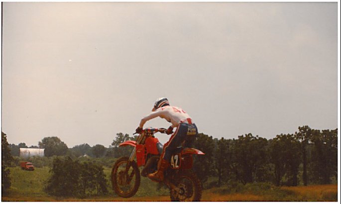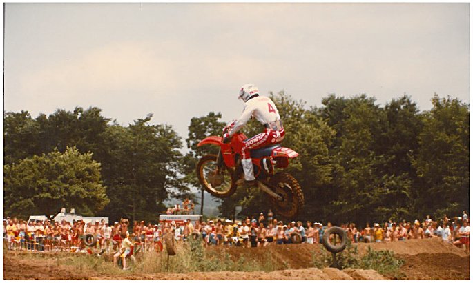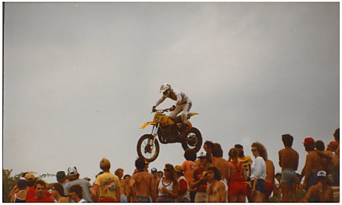 Broc “The Golden Boy” Glover won the ’83 500 national title and was pretty much dominant all season long in the bike bikes. This is a real cool shot. |