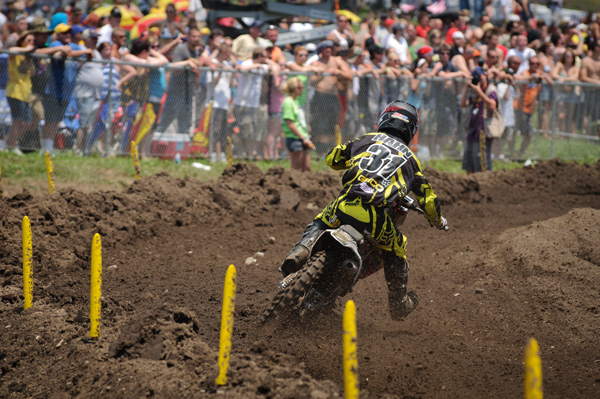 I had an epiphany watching the 250 class. I’ve never been near fast enough to consider racing at the pro level but often, like most who do race amateur, you watch the pro’s who seem to smooth out a track and make it look far easier than it is. It works as motivation to make you want to work toward that goal. Watching Blake Baggett at Red Bud did something else to my motivation. He made me want to sell my bike. The dude just demoralized the class. Watching him I thought, there’s no way in hell I can even imagine riding as flawlessly as he seemed to for 70 minutes on saturday. I don’t even remember RV and Townley going so fast in the awesome battle in 2007 at Red Bud. Listening to Baggett in the press conference was even scarier. He noted how in moto 2 he pulled out a lead, cruised a little to see if Wilson and Rattray were going to make a run at him, saw them gain a little bit on him and said “let’s go” and pushed back into sprint mode and sealed the deal.