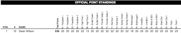 Wow, Wilson has looked absolutely unstoppable this outdoors season. Wait, what did I just say? Dean 15 unstoppable? Isn’t this the same guy who was frustrated and down on himself for what seemed most of the series, say until Unadilla? Round 9!! Have a look at the kids consistency: