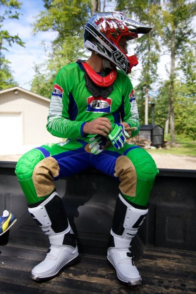 I’ll be honest, when I opened the box and saw that JT has sent me Kawi green gear, I was like ugghhh. I can’t say for certain if I’m just being nostalgic or what but I really do like the classic JT design sense represented in this gear. My janky friend Jeff termed the ensemble my “Gumby gear” but everyone agreed the moment I put it to use on the bike, it looked pretty damn good. I mean it’s not an easy thing to do to make green look less than puke-worthy on yellow but it worked. I’m stoked on the gear for both it’s look, performance and the simple fact that JT is back and it’s not a sham. Now if only I could pick up a lightly used ’95 RM125 pfffffftttttttttt…..