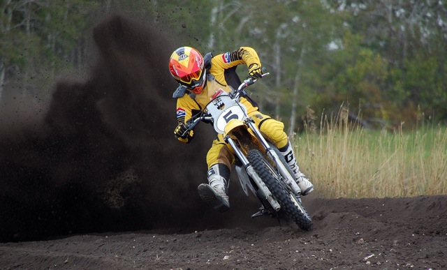 Jason Matthes shreds a berm on his ’81 YZ250. |