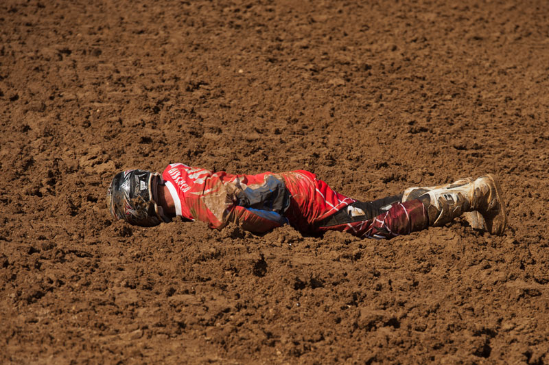 Antonio Cairoli was very fast on Saturday but his Sunday sucked. A first turn crash ruined his day and despite getting shot up for the second moto, his hand was too sore to continue. He seemed ok later on at the after party though. |