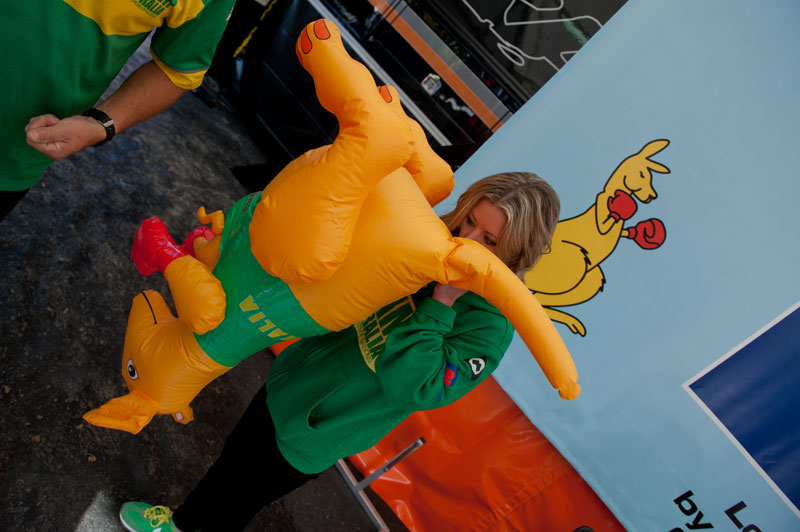Sheena Metcalfe blows up the inflatable kangaroo for Australia. Insert your own joke here. |