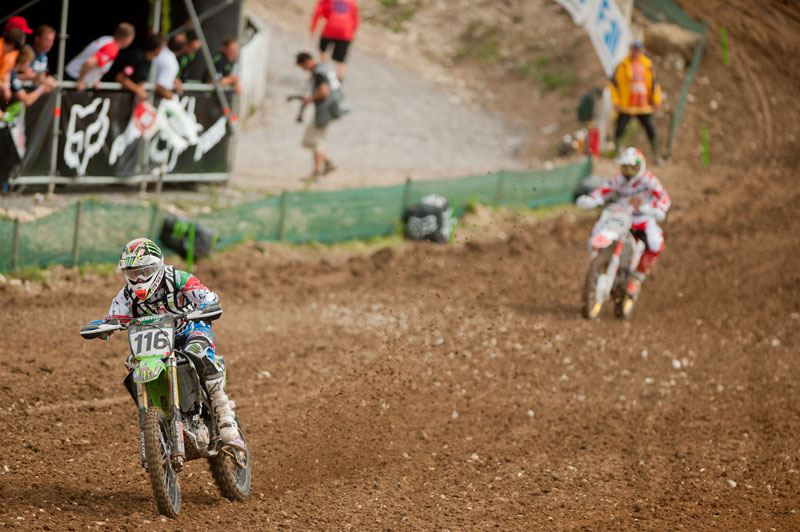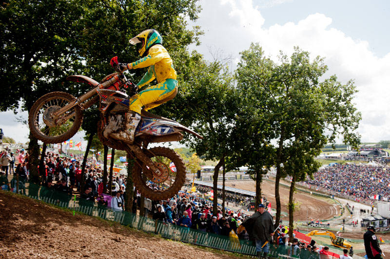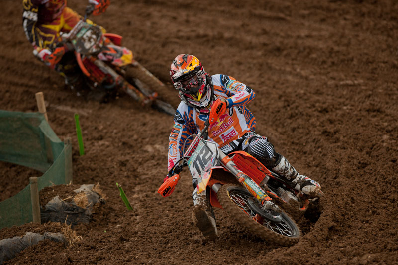 Holland’s Jeffrey Herlings rode awesome in his first moto and despite being stuck in third gear the whole race, ended up in second. He’s the favorite for the 2012 MX2 World title. |