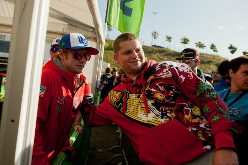 The King Stefan Everts and a track marshall. Stefan is still very, very popular in the pits even though its been years since he raced. |