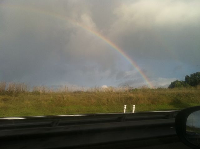 We saw a beautiful rainbow on Sunday morning on the way to the track, awww rainbows. |