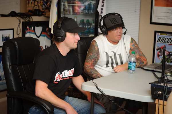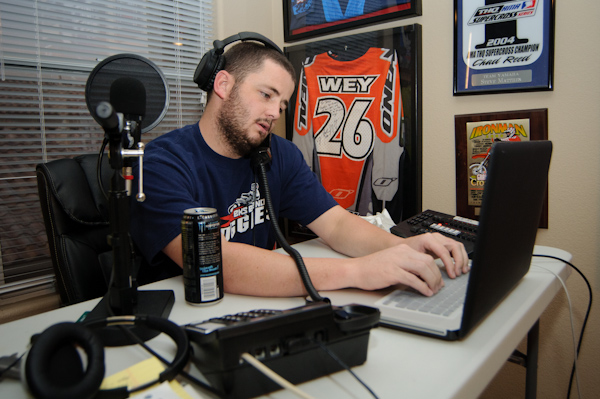 Monday, the big day had arrived and I was more nervous than a new guy in a prison shower block. I was awake bright and early continuously thinking of what I might say on the show, and what I should not say. When we arrived to the PulpMX studio, the basset guard dogs had recognized our arrival and were at the ready to attack if needed, but Matthes restrained them. Kelly had cooked some goodies to show our appreciation and they barely made the plane ride down from Montana. Matthes dug into them immediately and commented the wife on her baking skills. Steve told me to expect Kenny showing up at about 5 minutes before six, and about that time the front door swung open and in walked Watson, believe it or not supporting a flat bill hat, sleeveless shirt and a gallon of water. He must have been trying to make a good impression; he was almost 45 minutes early. He plopped himself down on the couch and Steve ran the show lineup by him. As soon as he told him about DV stepping away from the MotoConcepts race team Watson immediately called out the Alessi deal, as he said he saw Tony Alessi and Mike Genova pow-wowing outside the semi. The chit chat continued for a little bit in the living room, Watson kept checking out my chick from time to time, and Pookie offered us some beverages. Steve and Pookie were very accommodating to us and made us feel right at home