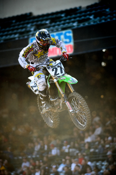 #27 Nick Wey – Motorsports, TiLube, Foremost, Kawasaki It’s with a heavy heart I have to write this because Wey is a fan favorite second only to Andrew Short. What can be said about Nick Wey that hasn’t already been said, funny, fast, well spoken, really really incredibly good looking and all around nice guy. I know I’m not alone in hoping that reuniting Nicholas with his Kawasaki would result in him being more comfortable on the bike and in turn an improvement in results. Wey qualified 19th in practice which seems decent when you see the list of guys both ahead of him and behind him on that list. A bad start in Supercross is and uphill battle but a bad start in a heat race is an uphill battle on a slippery slope. Well Wey got a bad start and was only able to work his way up to 10th in the heat race.