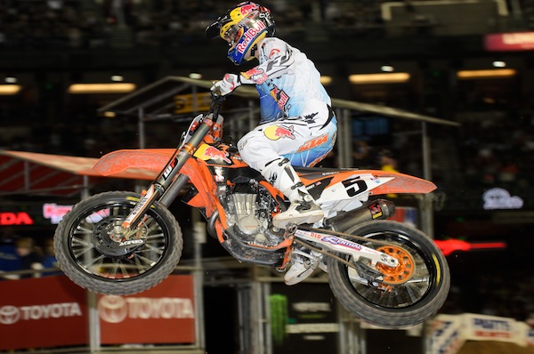 It’s safe to say that Ryan Dungey and KTM have surpassed everyone’s expectations so far this season. Coming into the year, most people wouldn’t accept the thought that Dungey was going to be as fast on the KTM as he was on his Suzuki but to his credit, he looks almost exactly the same. He doesn’t seem to have lost any speed but at the same time he doesn’t really seem to have gained any speed. It’s almost like he just never switched bikes. He’s just the same old consistent Dungey so far this year and that’s why he’s leading the points. He might not be quite as fast as Stewart or Villopoto, but he does have the ability to get starts and sprint away like no one’s business. As the series continues to progress, constant good finishes are going to become more and more important and that’s why Dungey is always a great pick to win the title. On the other hand though, if he really wants to seal the deal and continue to gain points on everyone he’s going to have to get out of his comfort zone and hang it out a little more. Dungey is always fast, but if he would just take a few more chances you have to think that there’s a good possibility he would be the fastest man on the track. Everyone always assumes that one or two of the title contenders will have a horrible finish at some point during the series and consistency will eventually prevail but it’s not safe to say that this year. Dungey, Reed and Villopoto all seem so focused right now that if any of them didn’t finish outside the top five all year it really wouldn’t be that surprising. The point trying to be made here is that Dungey has to go for wins. Although he does have one win just like the other top guys, his whole image has always been about being consistent and being on the podium. As the series continues he will undoubtedly pick up more speed as he gets more comfortable with the bike and you always know when he shows up for the weekend, he’s ready to race. He’s in his third year in the class and by now is accustomed to the long supercross schedule so look for him to be really strong towards the end of the series. The fact that Dungey is as competitive on the new KTM as he was on the Suzuki is a huge accomplishment in itself. The bike really speaks volumes about KTM’s drive to succeed in America and if Dungey ends up winning the title this year it will be a massive achievement for the entire program.