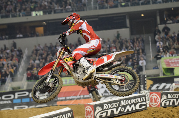 Dallas marked race-one for German-phenom, Ken Roczen. Many billed Roczen as the “German-Barcia” and although he wasn’t battling for the win, his riding resembled Barcia’s in a surprising way. Roczen also looked very controlled and confident. He wasn’t about to go balls-out to catch Barcia for a round-one duel and said as much after the race. Get good points and move on to round-two where hopefully he’s up front to make it happen.