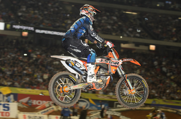 A podium for your second SX as a rookie isn’t bad at all. That’s what Boggle did on Saturday. I like this kid but don’t really know him or anything about him. His speed is right there with the “veterans”. Four-tenths from the pole in practice, four-tenths from Barcia and Bagget’s fastest lap in the main and at 9.1 seconds from the win in the 15-lap main. The stats don’t lie, he is on the path to do great things. But sometimes, for teenagers and rookies, great things seem close but could be pretty far at the same time. It’s all about their ambition, their work ethic and priorities. Like I said above, I don’t really know him nor his program and entourage but if he works the right way with MX/SX being his #1 priority, we will see him battle for a win very soon! That was an impressive ride…