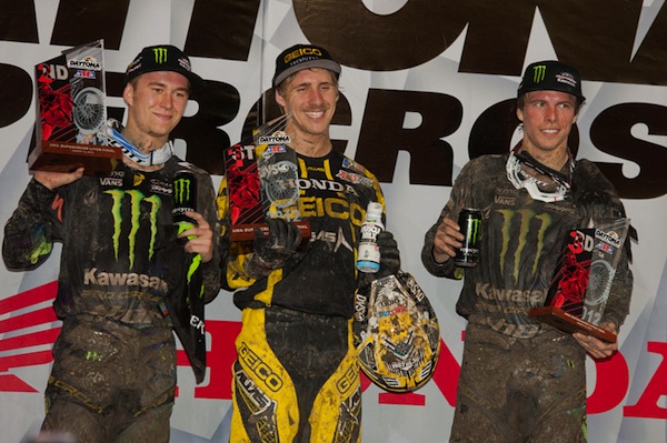 On a track with the conditions presented last night, history shows that following a holeshot up with error-free riding, even with less effort than those behind you, generally leaves you as the odds on favorite to seal the win. Vision is everything. Those early laps of unobstructed vision and race-line commitment are the trump card. Everyone else is dodging and darting into questionable lines in an attempt to salvage that vision and delay the ill-advised goggle toss. In Daytona the man of the series, Justin Barcia, held that enviable position. In Point/Counter-Point this week I argued that Barcia would win Daytona if by no other reason, having Jeff Stanton in his ear demanding it be so. Do you want to be the one to disappoint Six-Time!? Exactly.