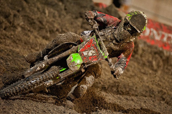 Stewy sought and conquered retribution for the win that was snatched from him last year when that wheelie seat-bounce to spectacular endo flicked him senseless. Millsaps made it interesting for about a lap but James was a man possessed and once past his team-mate continued to push and extend his gap. Great race for the JGR crew, without question the highlight of the teams SX racing effort since it’s inception. Fire up the advertising machine, 1st and 2nd in conditions like this is a billboard and magazine-ad gold-mine.