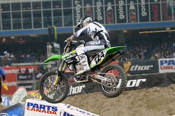 Ahhh Toronto- Americas top hat, the land of free healthcare, sponge hockey, cheese curds, bacon, Tim Hortons and Pamela Anderson (pre boob job). I watched the race live this weekend and the LCQ’s were rather uneventful other than JT$ getting a good jump on the gate a good run into the first corner and then doing a good job of stalling his bike. There was a collective sigh of agony heard through the TV by JT$ fans everywhere, hope his luck turns around soon because there is not a raw egg or set of concrete steps safe from the pounding of his Rocky inspired training during the week until he gets back into the main events. Alright let’s keep this Short, this week we’ve got Les Smith and Ryan Clark, yes that Ryan Clark the same guy you watched race when you attended your very first Supercross at the age of 8 years old.