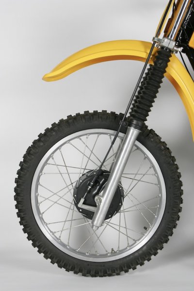 | The 130mm full-width front drum brake gave the RM excellent stopping power and good feel. The forks were softly sprung but afforded a smooth ride and surefooted handling. Photo Credit: Stephan LeGrand |