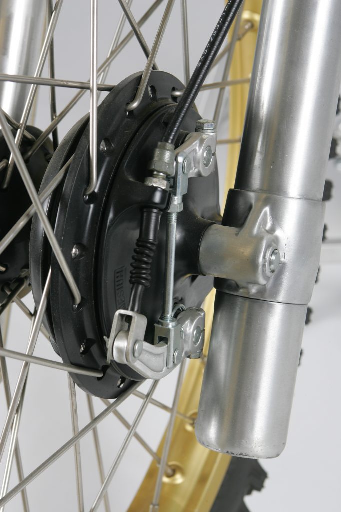 Dual leading shoe brakes like this one were as good as the drum was ever going to get. They were far superior to the single leading shoe brakes of the seventies, but a far cry from the discs we use today. Even a dual leading shoe brake like this would require the use of all four fingers to bring a bike down from speed. Amazingly, Dirt Bike commented that they did not know how anyone could need more brake than this in ’82. Now, this brake would feel underpowered on a 50cc mini bike. My, how times change. Photo Credit: Stephan LeGrand